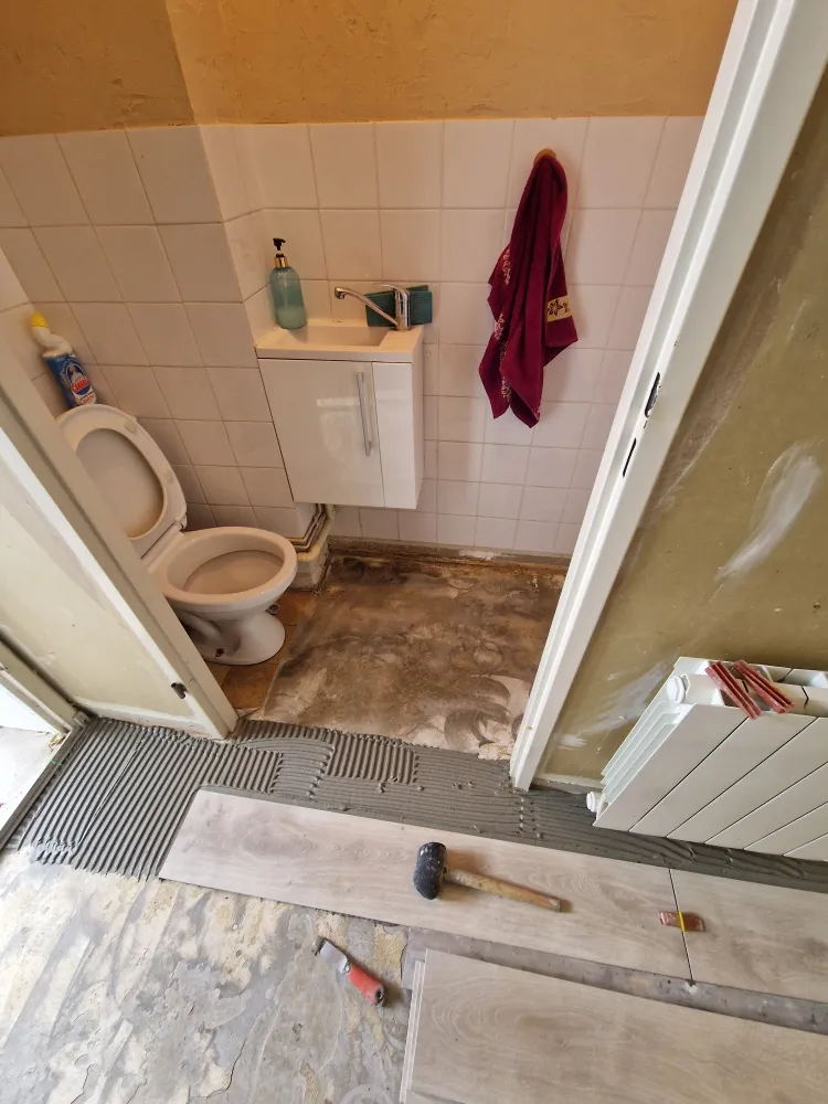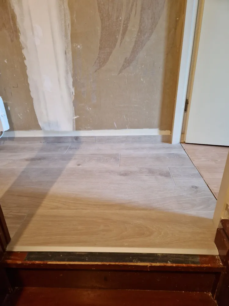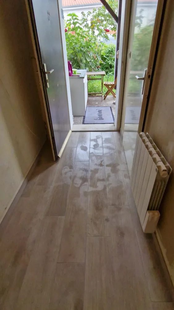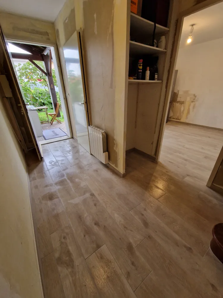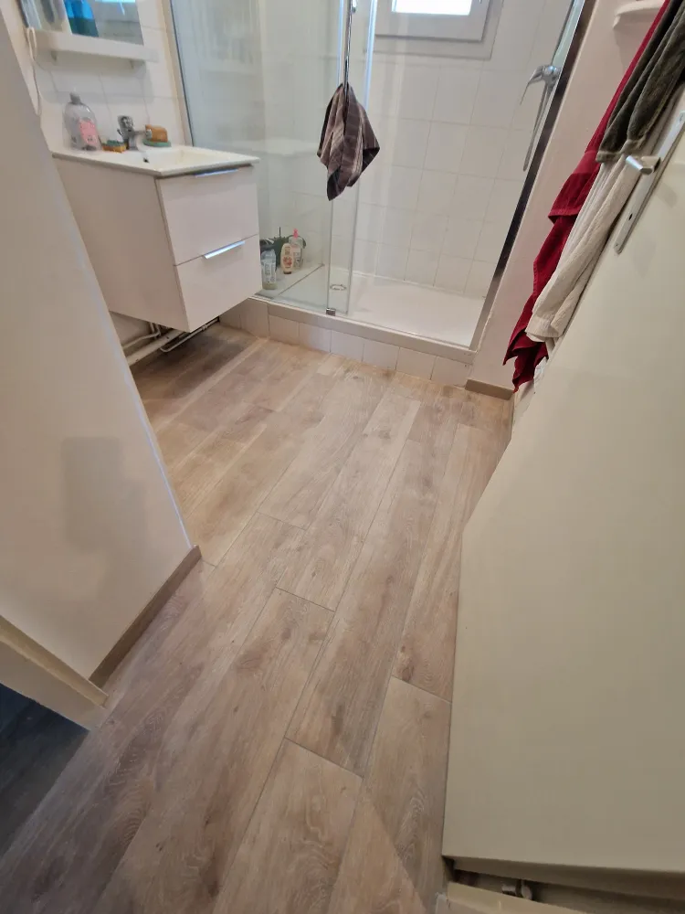 Barbosa David Carrelages vous propose une réalisation de pose de carrelage 20x120 ITALGRANITI EFFET BOIS TERNI avec plinthes assorties.
