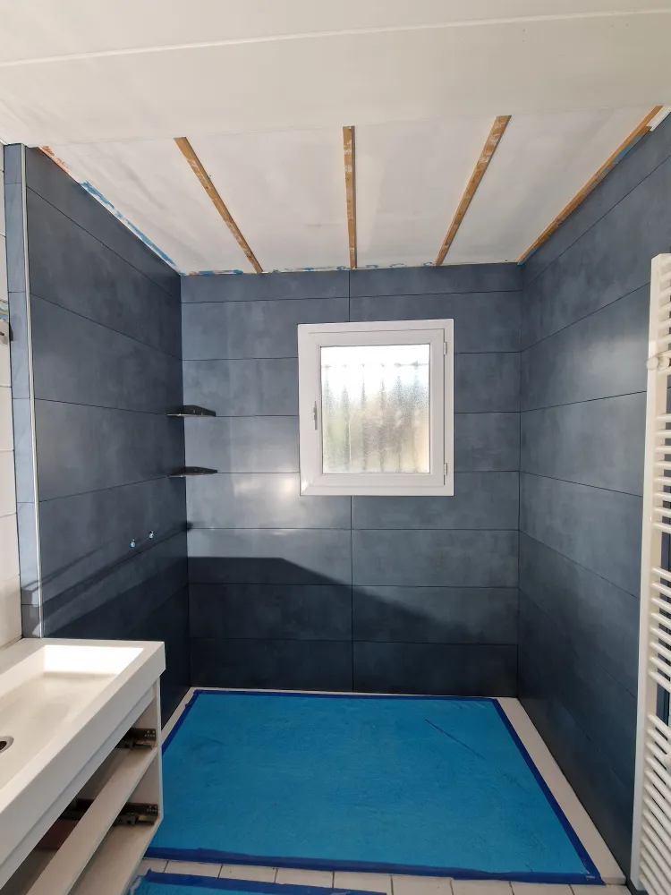 Barbosa David Carrelages vous propose une nouvelle réalisation d'un coin douche dans une salle de bain suite à un dégât des eaux.