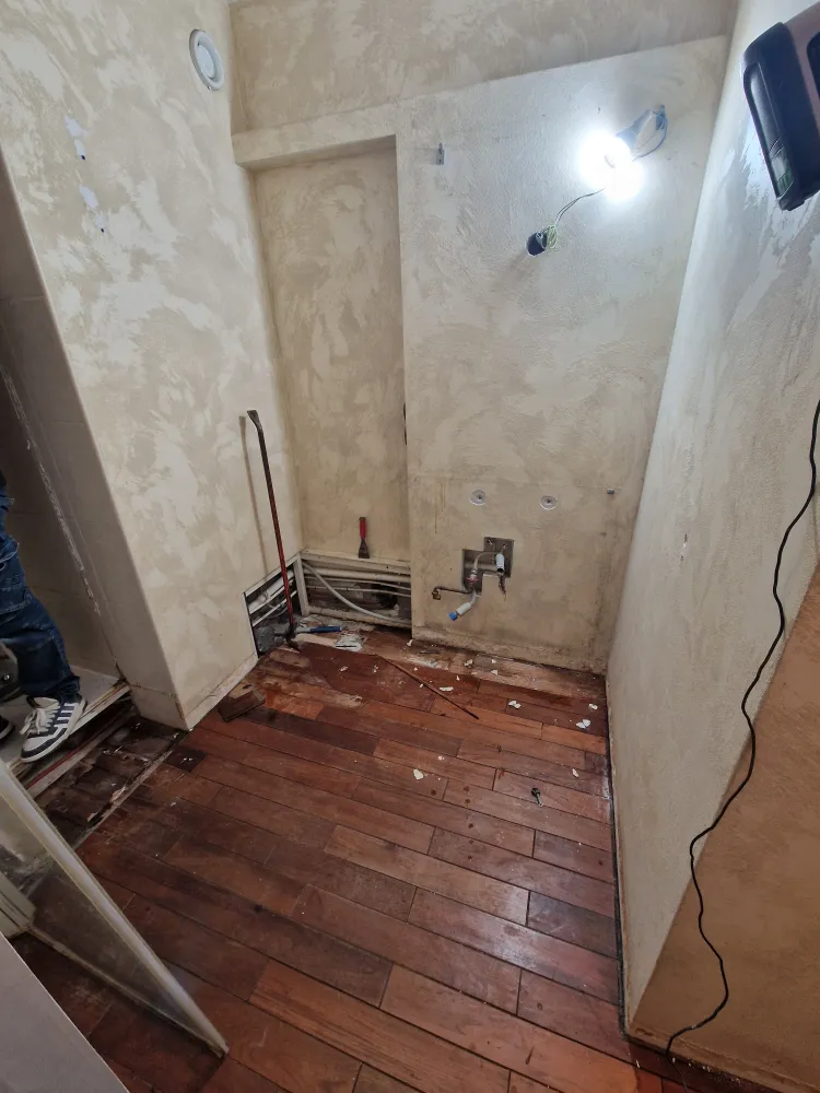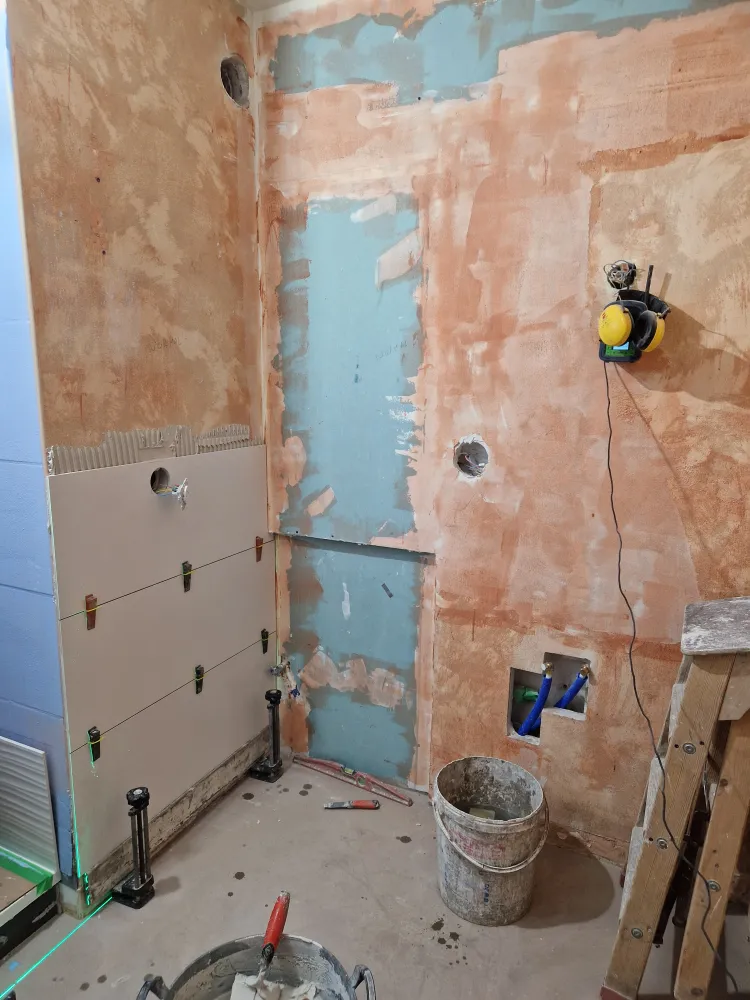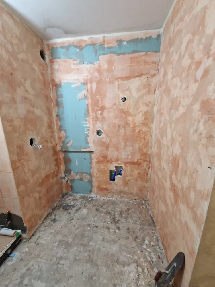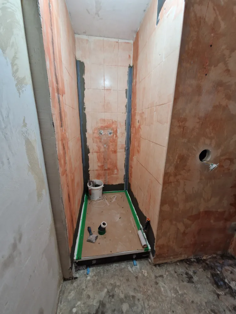 Barbosa David Carrelages a réalisé une rénovation complète d'une salle de bains avec application d'un primaire d'adhérence sur l'ensemble des murs.
