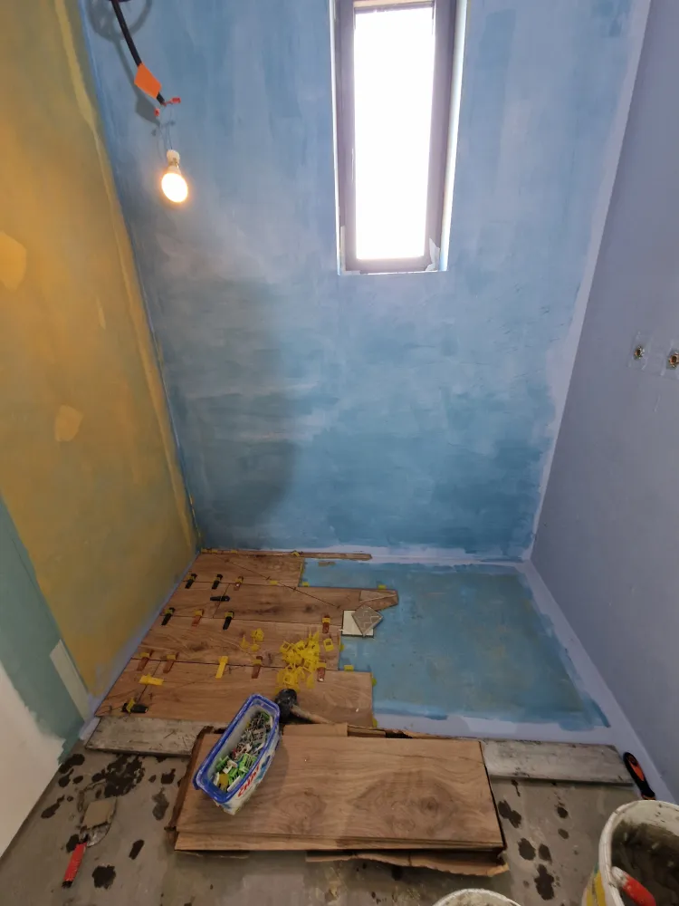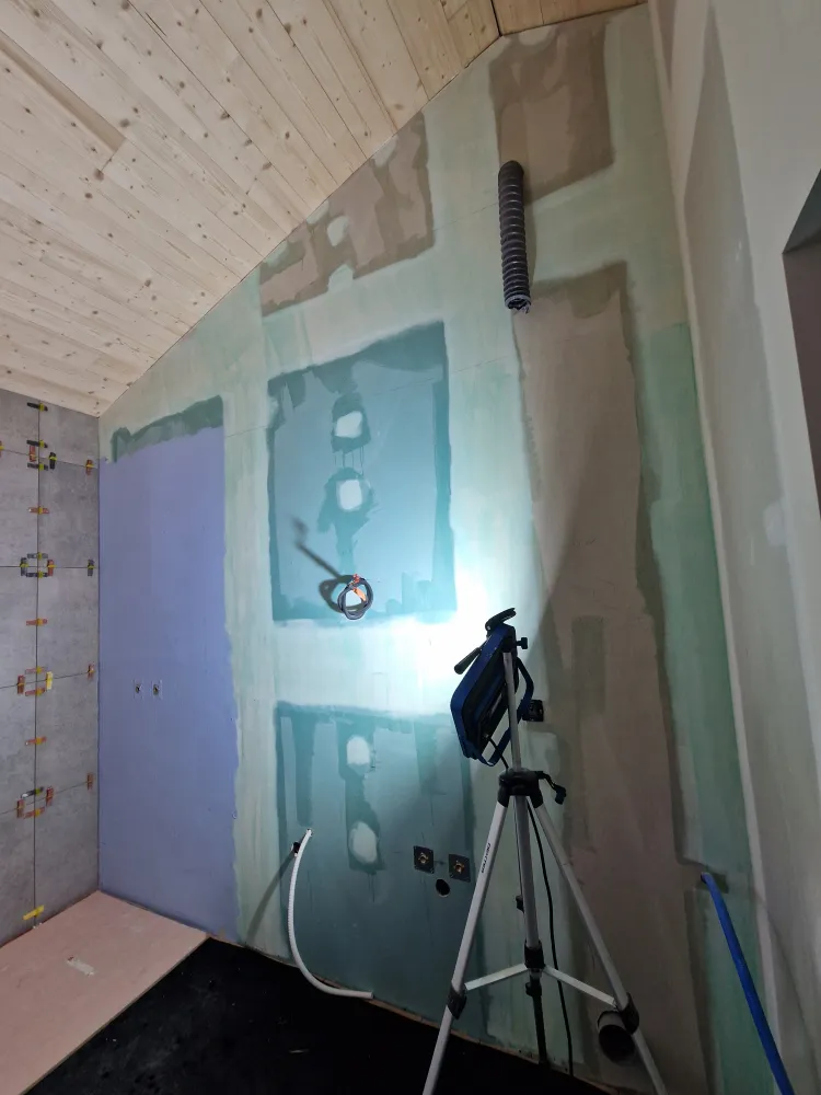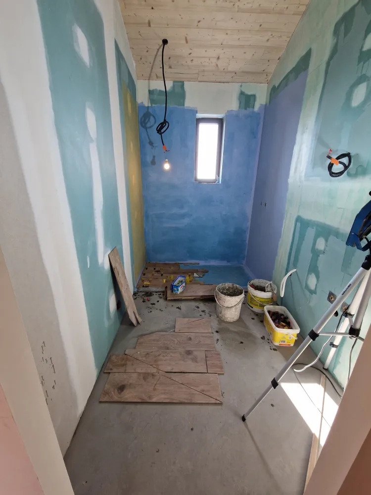 Avec une étanchéité des sols y compris des murs en 2 passes avec bandes de relevés.